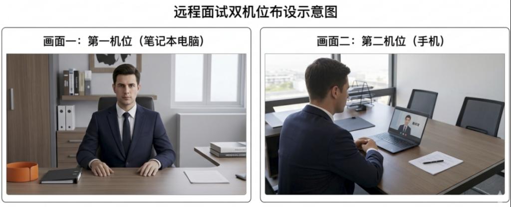 (1)采用双机位面试,请考生提前准备好远程复试所需的硬件设备: