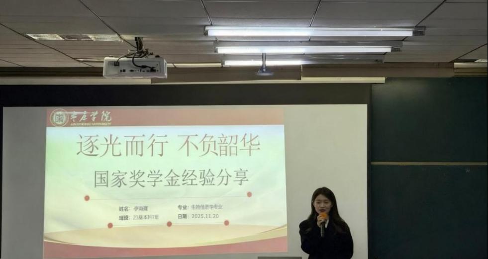 为锚定以学风育人才,以榜样树新风的育人目标,切实强化全院学子的学习主动性与成长使命感,11月19日,生命科学学院将学风建设与榜样引领深度结合,组织开展“榜样朋辈引领,结伴互励同行”优秀学子经验分享会。本次活动邀请国家奖学金、省政府奖学金、校长奖学金获得者分享各自的经验与心得。