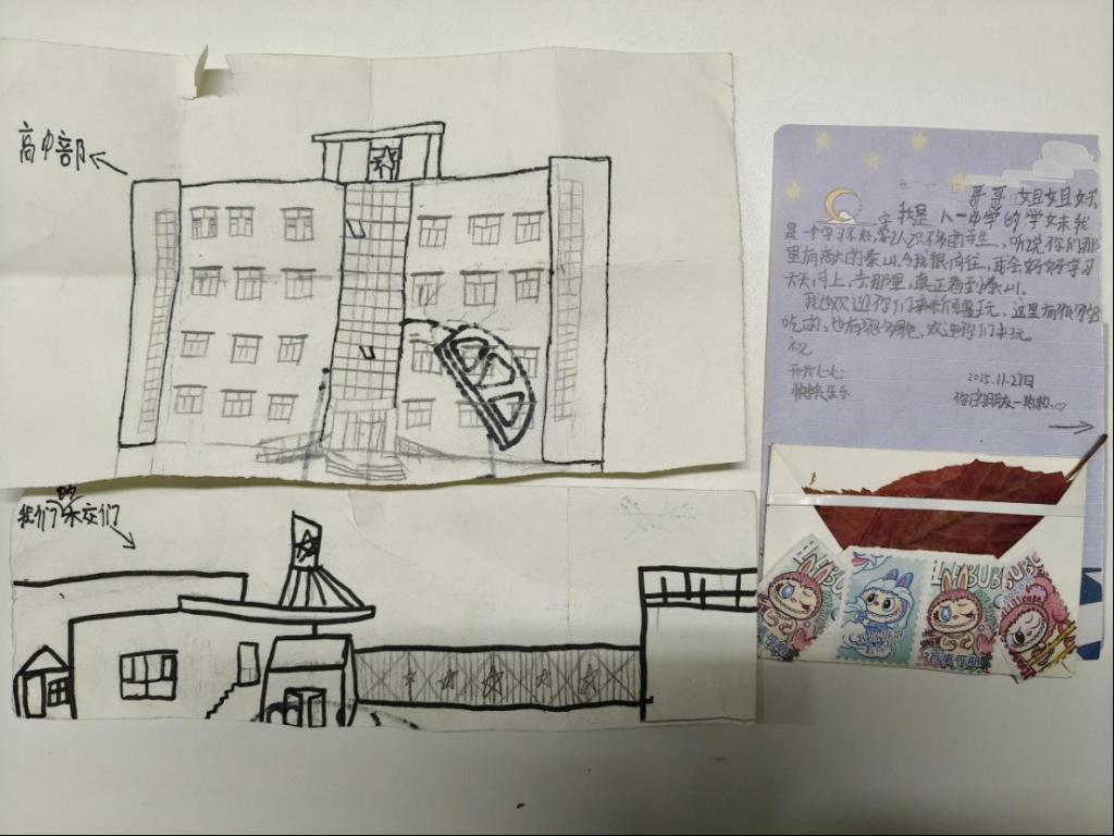 12月2日,学院收到了喀什小朋友们的暖心回信,一封封满载真挚的书信跨越千山万水,喀什的小朋友们在信中分享了对实验室探究生物标本的好奇、对大学生活中社团等活动的向往,不少小朋友还在信末附上维吾尔族小花帽手绘图案和胡杨叶片,传递跨越山海的情谊。字里行间的纯粹热忱,传递着鲁喀之间的沉沉温情。