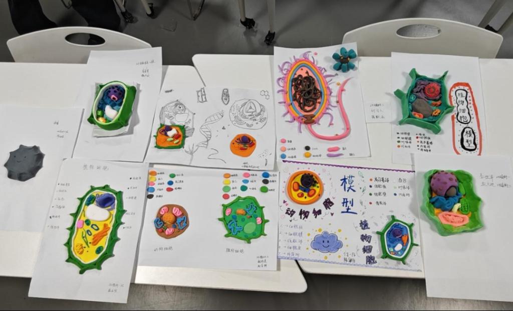 活动伊始,参与同学有序签到后,便投入到A4纸、黏土与彩笔构建的创意世界中。大家或凝神查阅资料,或热烈交流构思,将专业知识与艺术灵感悄然融合——指尖轻拢慢捻,黏土渐次成型为精巧的细胞模型;笔尖流转勾勒,独属于细胞的纹理舒展于纸面。创作过程中,同学们恪守生物学原理,融入色彩巧思与造型创意,让每一件作品既绽放个性光彩,又充分展现出扎实的专业素养与蓬勃的创造活力。