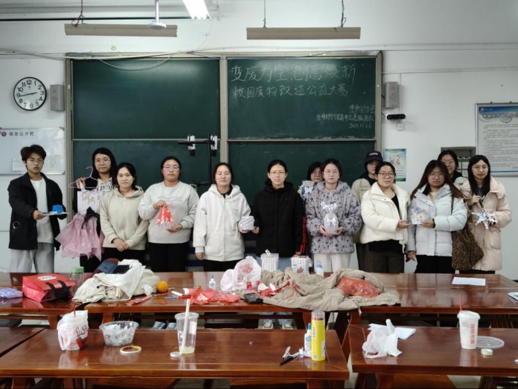 为响应绿色低碳发展号召,引导学生树立环保意识、践行生态责任,生命科学学院于2025年11月26日在理工楼2319举办“变废为宝·创意焕新”校园废物改造公益大赛。学院志愿服务队与生物协会成员参与其中,共同见证废旧物品的重生与创意绽放。