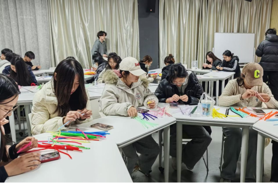 活动中,来自不同民族的同学们以扭扭棒为媒,将本民族独特的纹样、色彩与象征元素巧妙融入创作中,制作出富有民族风情的手工作品,丰富了资助育人的形式与内涵。在轻松愉悦的氛围里,同学们不仅体验到了手工制作的乐趣,也在交流互动中分享了各自的文化背景与生活故事,进一步增强了彼此之间的了解与认同。