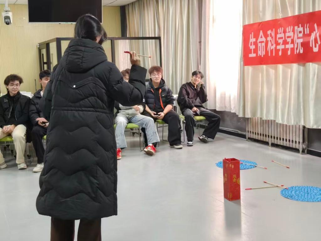 为帮助同学们缓解考试期间所面临的学习压力与焦虑情绪,营造积极健康的心理氛围,12月7日下午,生命科学学院在理工楼2317教室及理工楼下开展了“心灵沿途,轻松驿站”的系列心理减压活动。本次活动通过多种轻松有趣的互动环节,引导同学们正确面对压力,掌握有效的情绪调节方法,增强心理调适能力,从而以更平稳、更自信的心态迎接考试挑战。